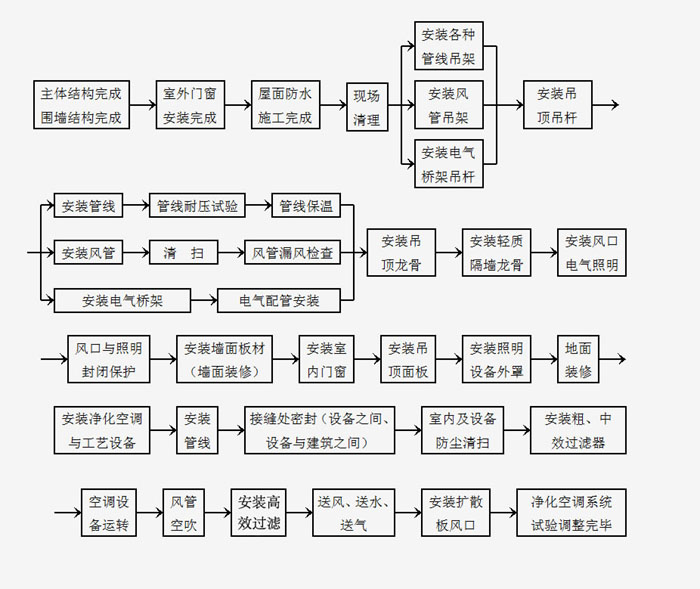 3、凈化工程設計應為施工安裝、維護管理、測試和安全運行創造必要的條件。