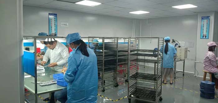2、無塵車間潔凈室一般采用泡沫彩鋼或是巖棉板吊頂有立墻,有獨立的空調送風系統,空氣經過初效、中效、高效三級過濾,人員及物料配有風淋室及傳遞窗潔凈過濾。