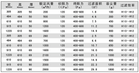 選購指南-無隔板亞高效過濾器技術參數