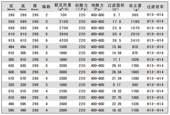 1.耐高濕有隔板高效過濾器主要用于過濾0.3um以上的空氣懸浮顆粒,作為各種過濾系統的末端過濾。